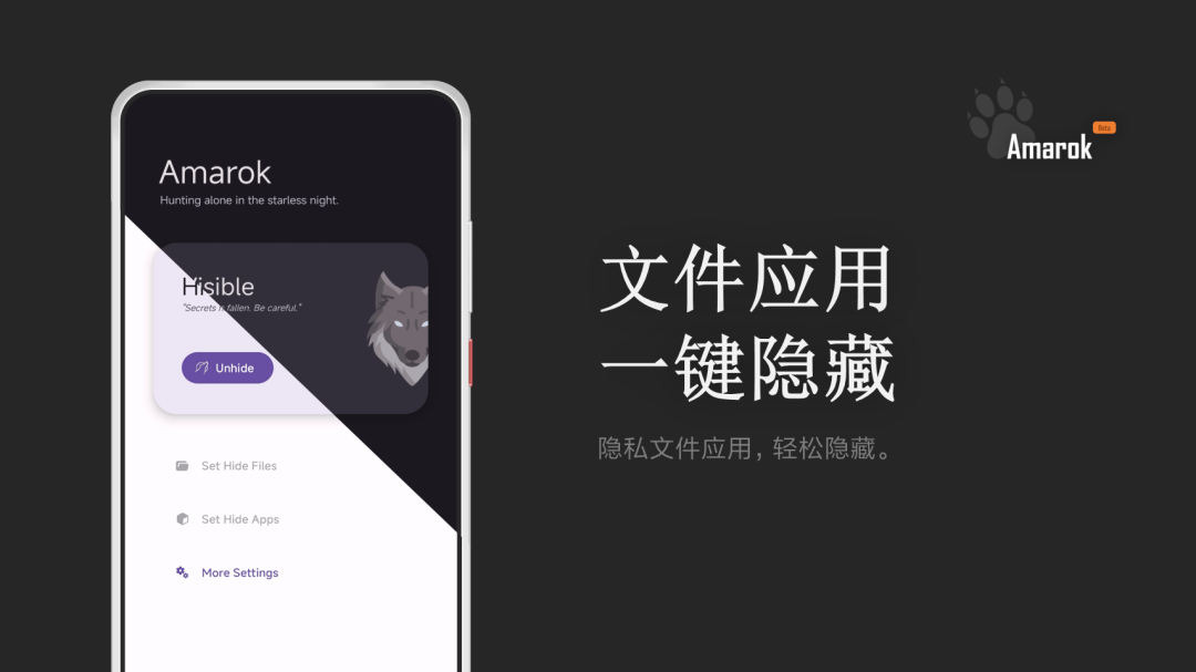如果你手机有些隐私文件 / 应用不想被被人知道,那么可以通过「Amarok」这款轻量级隐私保护小工具,一键隐藏你的隐私文件和应用。