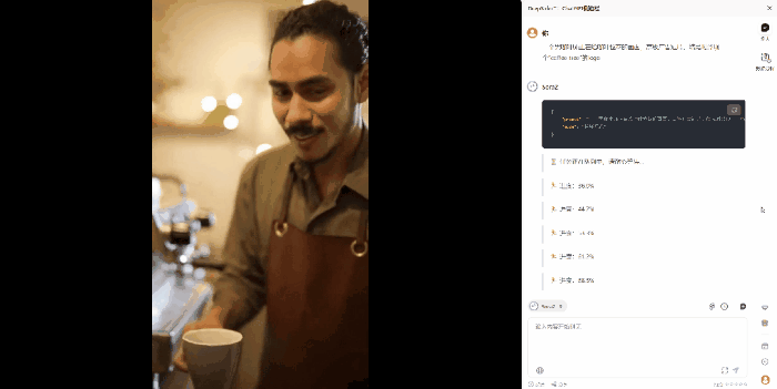 动图大小受限,大家可以点击下方视频查看Sora2生成的原视频,整个咖啡广告都十分丝滑,配音也很流畅。