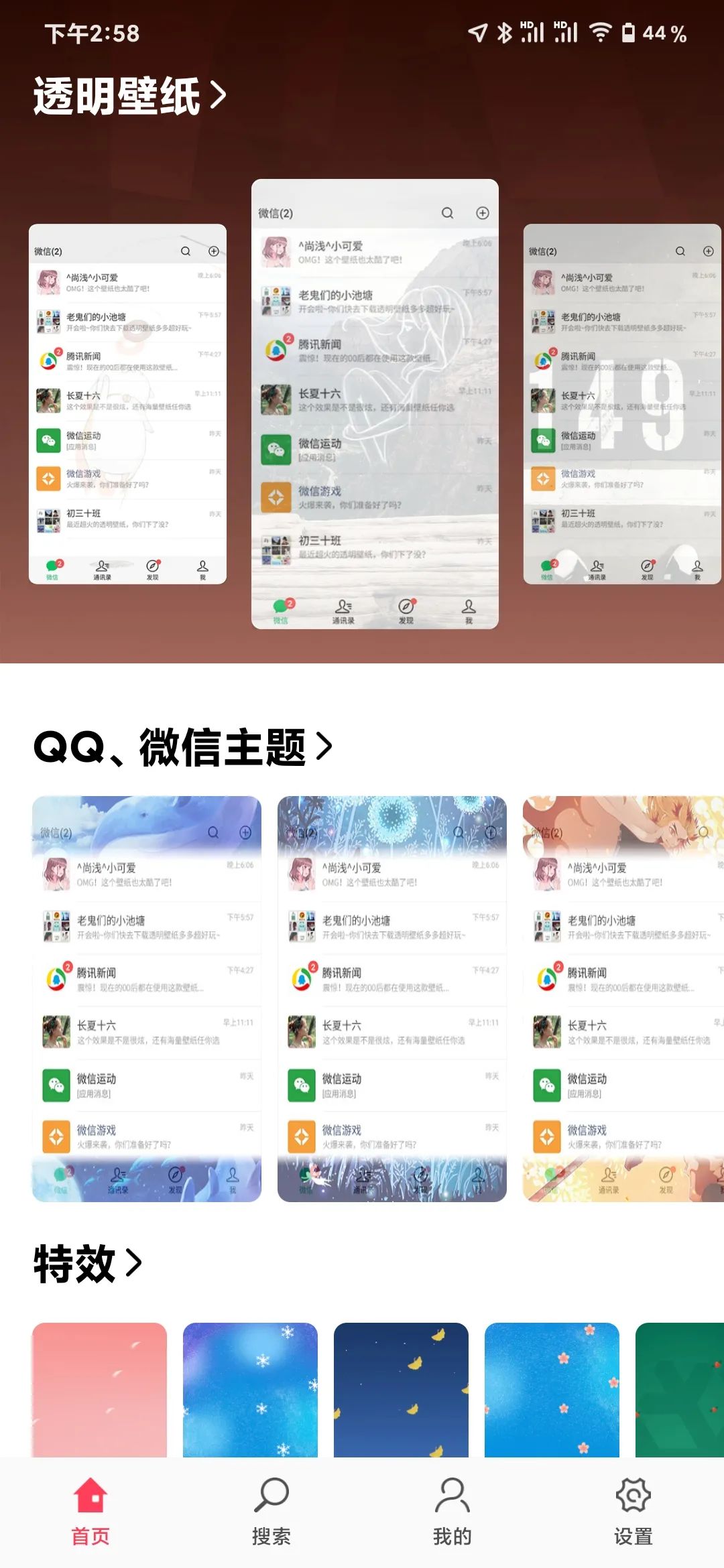「动态透明壁纸」这是一款全局的壁纸应用,可以给 APP 添加不同的透明背景效果,默认提供了非常多的壁纸、动态主题等,支持定制壁纸和选择透明度等元素。