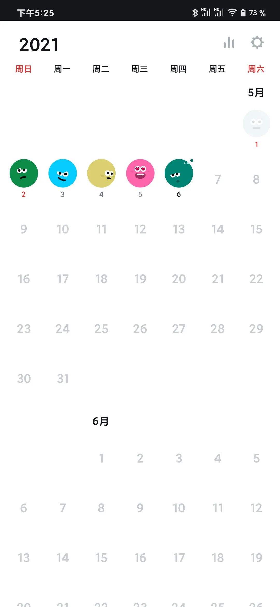 [安卓] Emolog - 用表情记录每天的心情日记如果你懒得用文字来记录每天的心情日记,可以使用这款「Emolog」主打表情记录的日记应用。选择你当天的心情状态表情,然后支持简单的记录标题、文本内容。下载地址: https://xia1ge.lanzoui.com/iWIqqov593c 功能方面,内置了61个 Emoji 表情,小部分需要会员才能使用,一般免费表情包够用的了,另外还支持密码锁定、统计你的相关数据等。