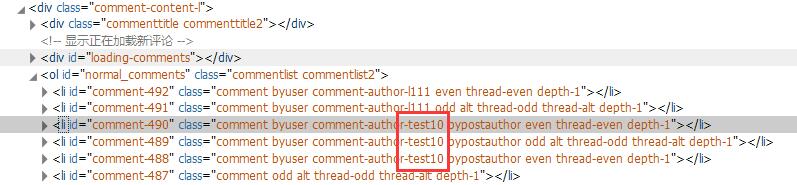 // comment_class()过滤后的结果如下,去掉了原有class里的comment-author-test10,请和上面的图1比较