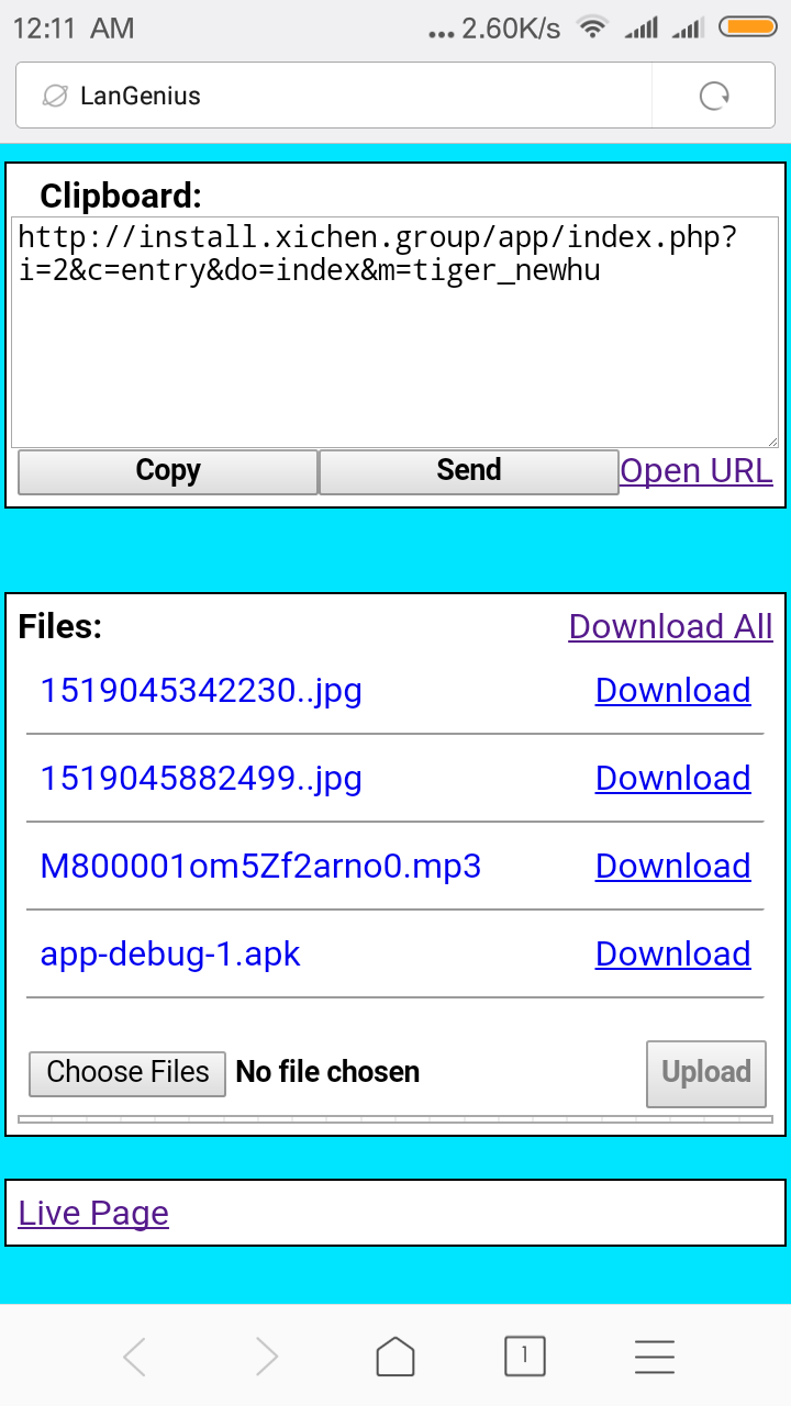 「局域网精灵」一款安卓的手机局域网传文件利器,安装以后,你的手机将变身一台 Web 服务器 ! 点击按钮添加你要分享的文件, 这些内容将展示在你的web主页上,主页地址为你的IP地址加上2333端口号(例如192.168.1.101:2333).