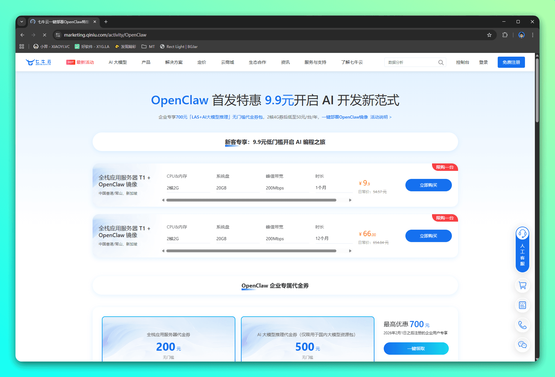 OpenClaw 作为硅谷爆火的开源 AI 智能体,凭借系统级行动力、持久化记忆和多 IM 工具无缝集成的特性,成为新一代「数字员工」标杆。七牛 OpenClaw 首发特惠 9.9元开启 AI 开发新范式,选择云部署拥有 7x24 小时“数字员工”。本地部署需解决硬件成本、公网 IP、环境配置等问题,而七牛云全栈应用服务器 LAS 支持开箱即用的一键部署,无需自建环境、无需购置硬件。