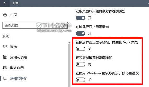 2.设置 → 系统 → 通知和操作 → 禁用 通知(如下图)