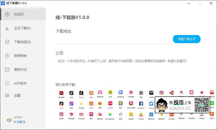 另外「域下载器」作者也开发了电脑PC版,主要下载功能和手机端一样,其它功能作者说后面会添加更新。